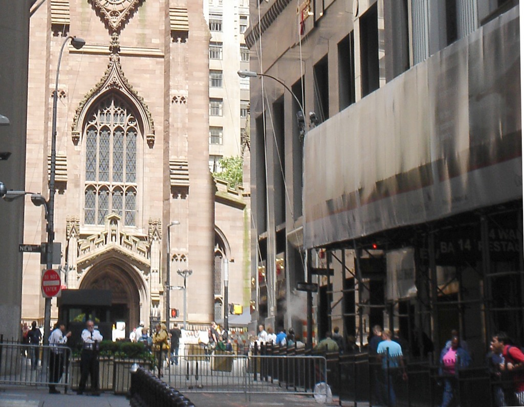 Еще одно известное здание Нью-Йорка — Всеми́рный торго́вый центр был разрушен 11 сентября 2001 года в результате террористической атаки. Башни его были самыми высокими и являлись туристической достопримечательностью. На крыше разрушенных башен близнецов было много туристов, которые погибли вместе с множеством других людей.newyork3