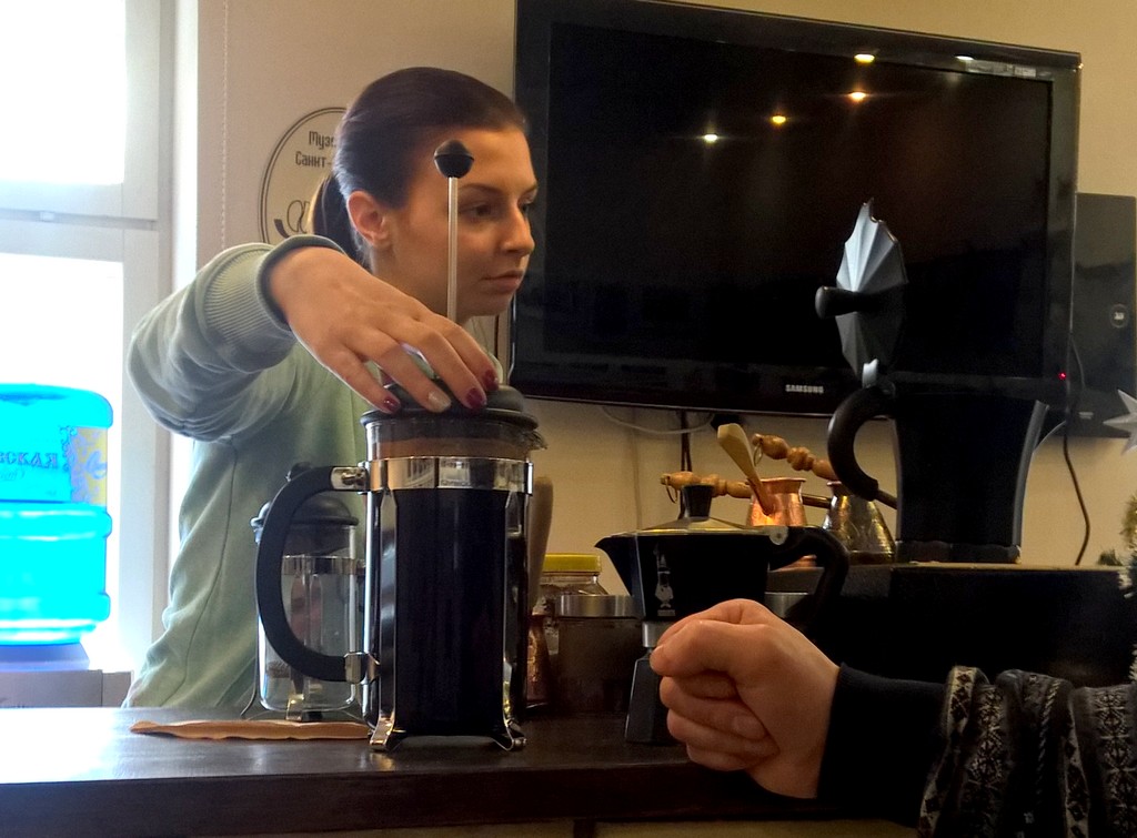 Для френч-пресса оказывается нужен специальный помол, более крупный, чем для турки. И кстати редкие сорта должны подаваться именно во френч-прессе. Хотя, лично для себя, я поняла, что мне нравится старая добрая турка — самый популярный способ заварки в России. Но моя мама предпочитает итальянское домашнее эспрессо из гейзерной кофеварки.