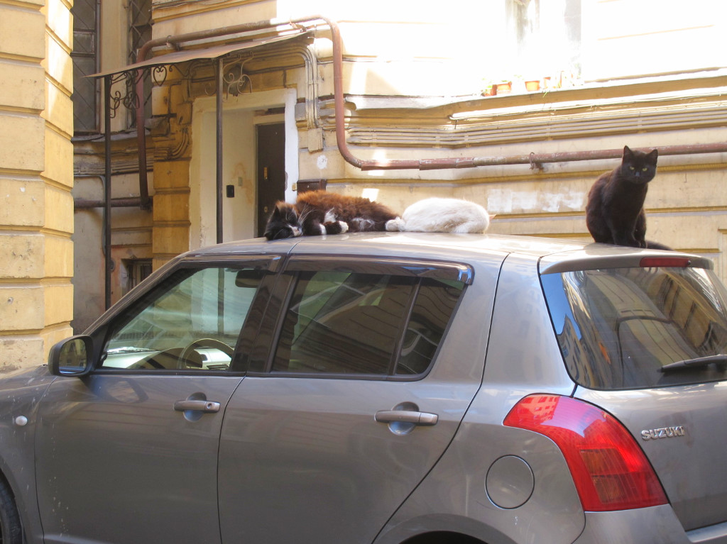 В один из таких деньков мы с друзьями тоже решили прогуляться до Петергофа. Лето в тот год длилось два дня. Это был как раз один из таких. Даже кошек было не выгнать с машин, уж больно хотелось на солнышке погреться.