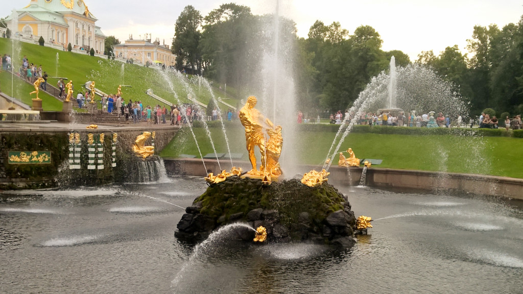 На мой вкус, сам дворец можно и не посещать, внутри он мало чем отличается от своих собратьев — прочих загородных дворцов царей в Пушкине и Павловске. Туристы, да и жители едут смотреть прежде всего на фонтаны и конечно на ансамбль Большого каскада.