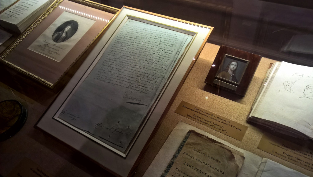 В честь «Ночи музеев» здесь открыли для посетителей «зал русской драмы». Здесь хранятся бесценные экспонаты — старинные книги текстами первых пьес, которые играли тогда в театре.театральный музей спб