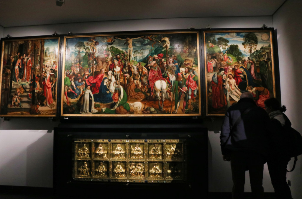 Здесь хранится целый кладезь шедевров средневекового искусства. Особенно интересен: крест Оттона, старинные манускрипты и рака, в которой ранее находился череп Карла.
