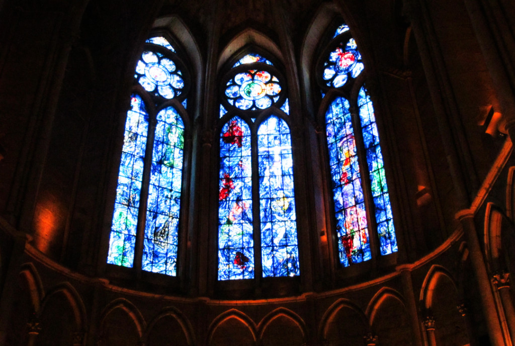 На меня же храм не произвел того же впечатления, что Шартр, например. Хотя видно, что церковь в Реймсе гораздо больше. К тому же в Шартре сохранились старинные витражи, здесь они тоже есть, но их не так много и они не такие яркие. Кстати здесь тоже есть витражи Марка Шагала, но они как то потерялись и я их даже не заметила.