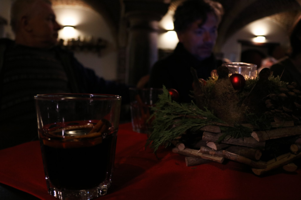 На полный осмотр замка вместе с башней у нас ушло почти два часа. И в конце нас ждал сюрприз: оказывается в стоимость билета входило посещение кафе. Там бесплатно (при предъявлении входного билета) давали горячий шоколад или глинтвейн и блинчик.